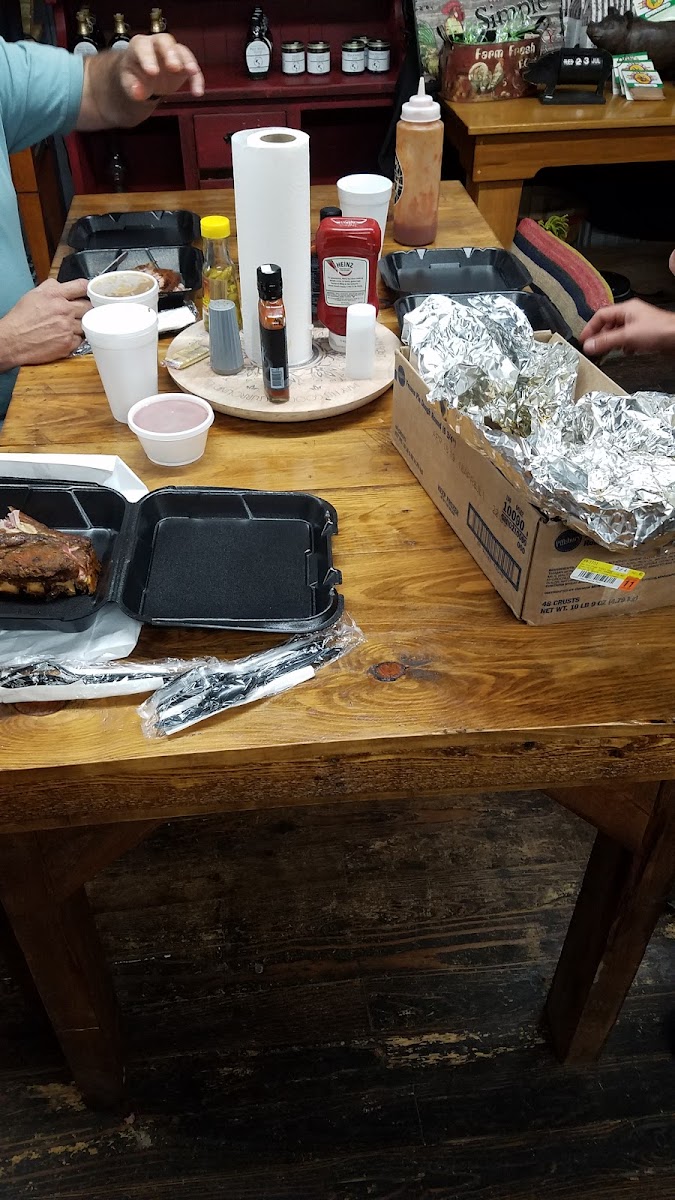 Local Joe's is a local treasure! Delicious food and good service. Tables so you can dine in and I think they've even added a small covered deck on the side for outside dining. In addition to barbecue (red and white sauce), they offer potato salad, slaw (vinegar and mayo based), mac and cheese, greens & beans, and several other sides, as well as, nachos, pimento cheese and many dessert items plus chips, jellies, jams, relishes, honey, etc. I'm pretty sure their fried pies are a popular menu item and come in many flavors to choose from. This place is definitely worth stopping in! The smokers are right outside the building and the smell in the morning is amazing and if you stop by in the winter, it feels fantastic to walk by them. You get the warmth and the aroma for a cozy, inviting reason to mosey on in for a good meal. I always get the turkey sandwich and it's so delicious and incredibly tender every time. Love it! My only advice is to carry cash because they have to tack on a tiny bit because of card processing fees if you use a card, afterall they are a small business and small businesses can't afford to eat all those fees card processing companies charge. And don't forget to drop a little something in the tip jar on the counter; these folks do a great job. They also do catering! Their vans are ready to roll to your next important event. And last Fall, they even offered pots of mums; they sat beautifully in the back of and surrounding their bright yellow vintage pickup truck out front. Definitely picture perfect; wish I'd have gotten a photo. Maybe this Fall